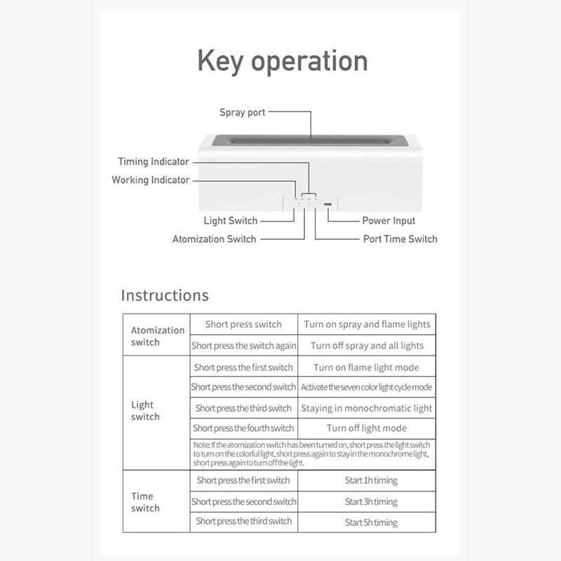 - Function: Aromatherapy + Humidification + LED Flame Effect