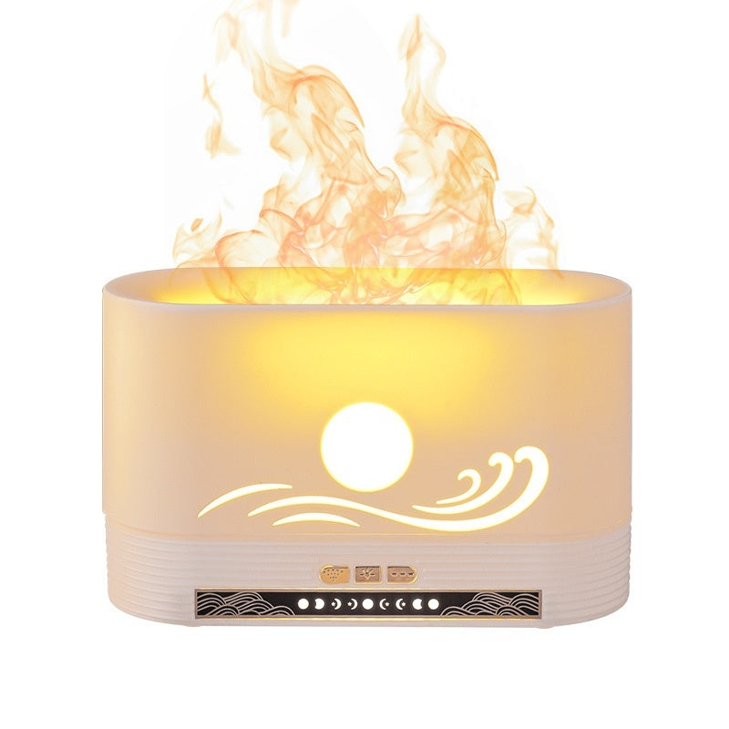 Flame Aromatherapy Humidifier with Fan – Ultrasonic Cool Mist Diffuser & LED Firelight Lamp